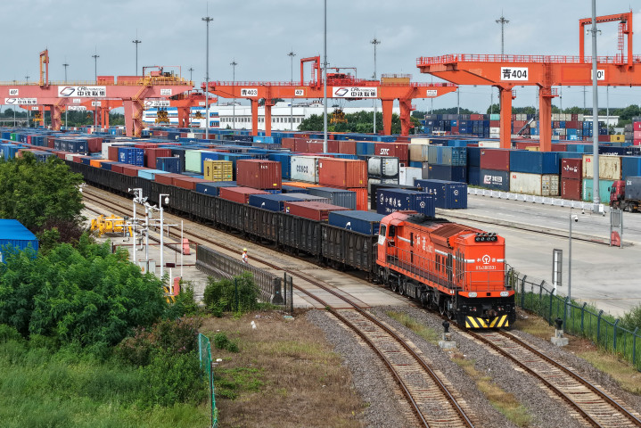 8月27日线上实盘配资网站,货运列车驶入位于上合示范区内的中国-上海合作组织地方经贸合作示范区多式联运中心(无人机照片)。(新华社)