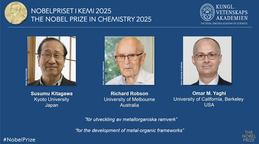 北京时间10月8日17时45分,瑞典皇家科学院宣布线上实盘配资网站,将2025年诺贝尔化学奖授予日本京都大学北川进(Susumu Kitagawa)、澳大利亚墨尔本大学理查德·罗布森(Richard Robson)和美国加州大学伯克利分校奥马尔·亚吉(Omar M. Yaghi),以表彰他们“开发金属有机框架”。