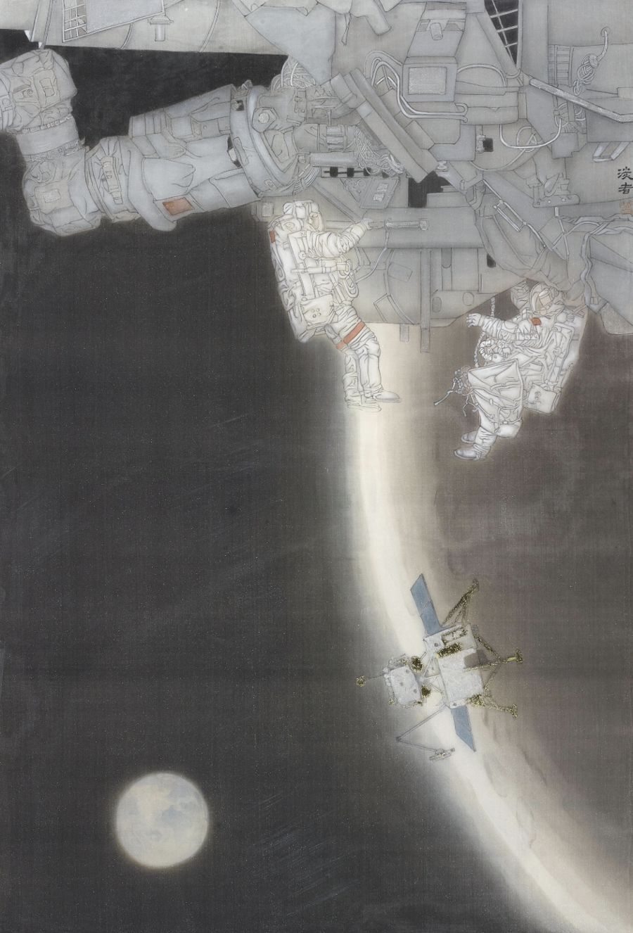 工笔画《上海科技创新·天宫翱翔》。上海美术馆供图。